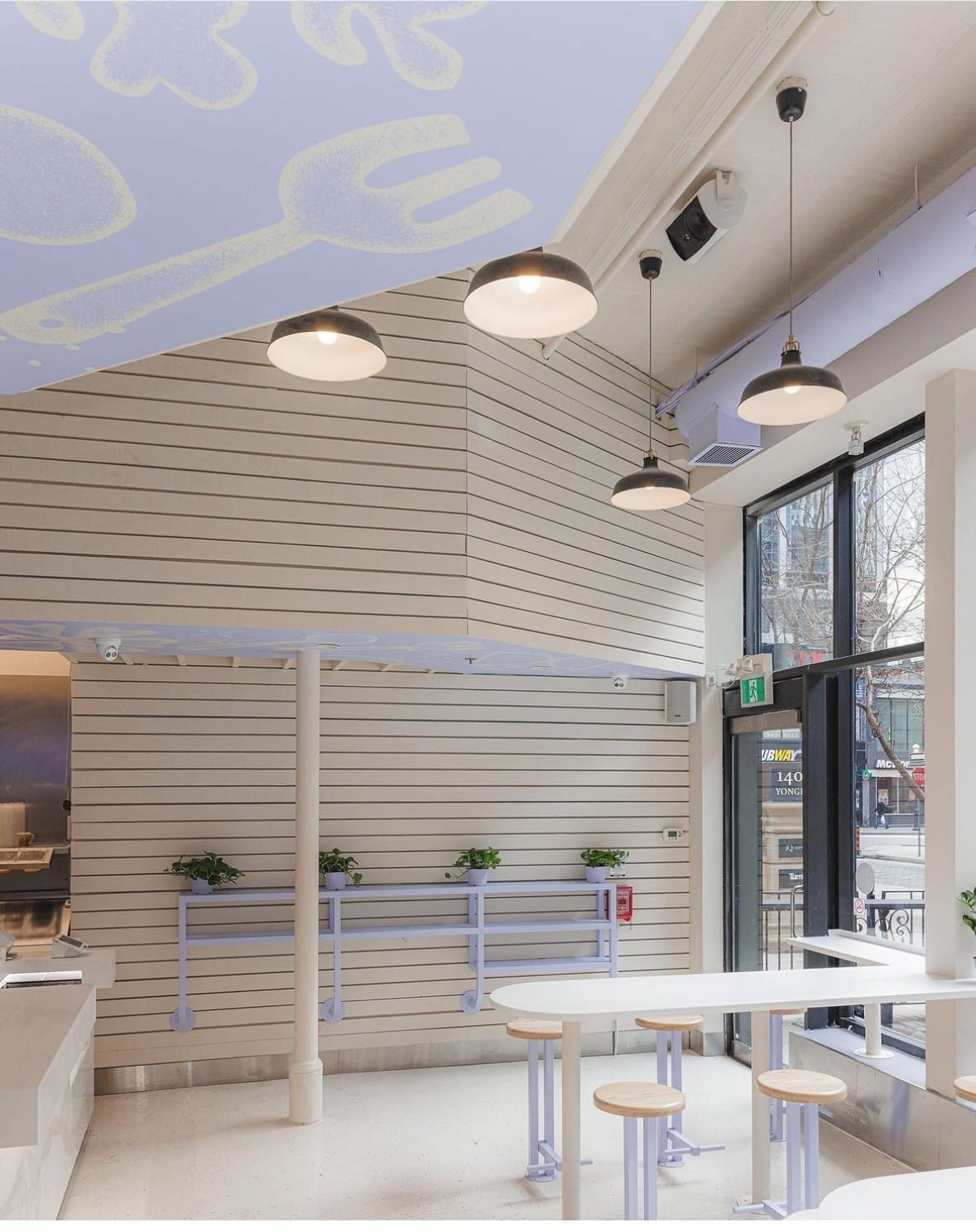 The interior build-out, masterfully executed by DNS & Carbon Build Group, features purple powder-coated custom stainless equipment that adds a pop of vibrant color to the space.